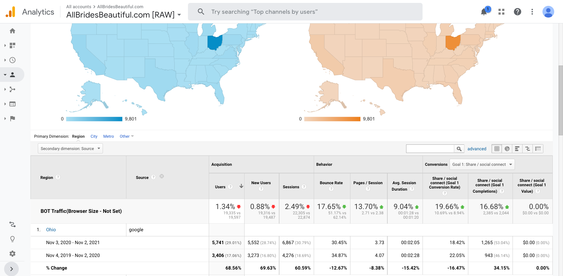 68% growth in Ohio Google traffic