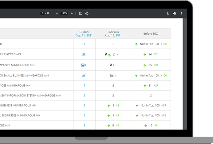 iComp ranked on page 1 for over 100 non-branded terms 9 months in and transitioned from a regional plan to a national plan soon after.
