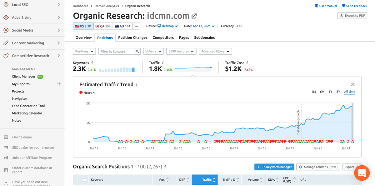 International Design only had never exceeded 43 non-branded page one keywords.