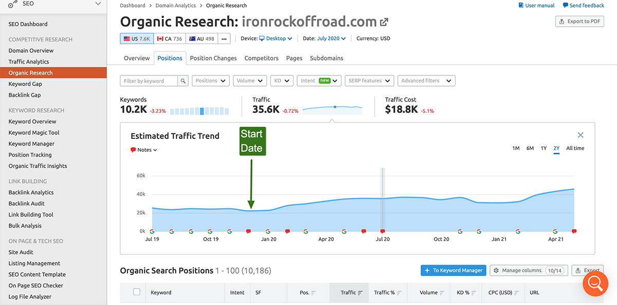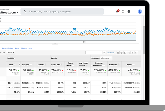 Even with 70% new organic traffic (according to Google Analytics) 18 months in, Iron Rock Off Road saw their time on site average actually increase by 30 seconds.