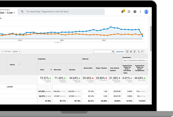 Knowing the bounce rates would go up as new people saw the site, Agency Jet added a custom long-form content package to rank Howard for very specific terms and increase conversions.