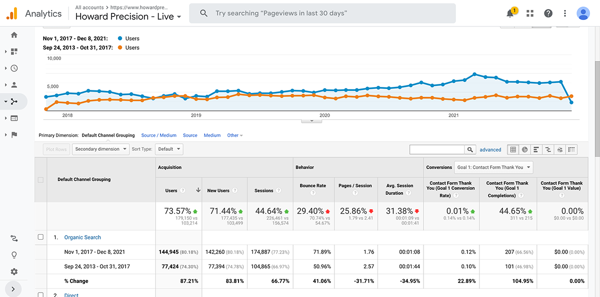 Howard Precision now sees new organic users contact them over twice as often as they had prior to working with Agency Jet.