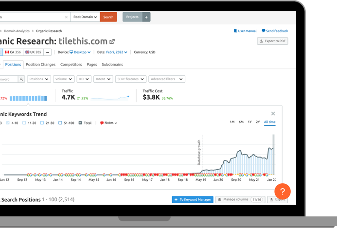 Tile This started with 96 page one keywords. Now (Feb. 2022) they have 528 keywords sitting on page one of Google.